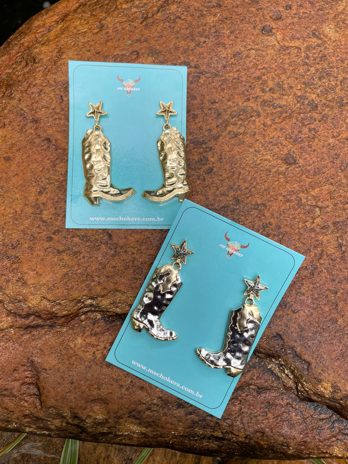 Acrescente charme ao seu look country com o brinco de botas da MS Chokers, disponível em duas opções de banho para melhor se adequar ao seu estilo. Ideal para a cowgirl autentica que deseja expressar sua paixão pela moda western.